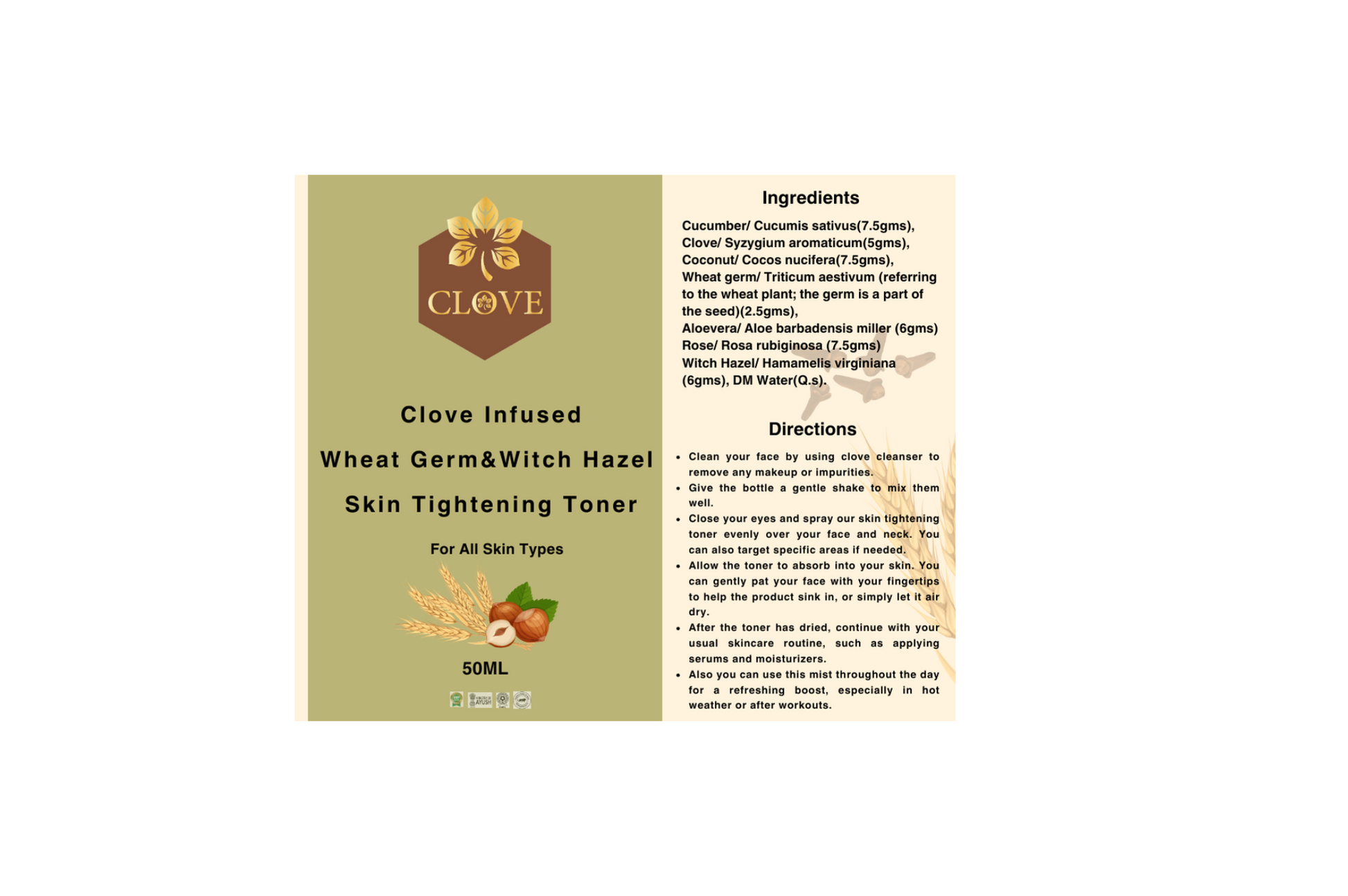 Wheat Germ & Witch Hazel Skin Tightening Toner | 50ml